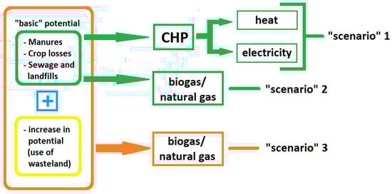 Discussing the importance of biogas potential for energy security also requires analyzing the possibilities of increasing its potential. One of the easiest ways to increase biogas production seems to be the use of wasteland for the cultivation of maize, the crops of which could supply local biogas plants. The calculation results for this scenario are presented in Figure 5.