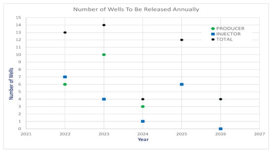 - Each of the water injection wells are to be assigned a certain number of oil producers and drilled once one of the assigned producers starts;