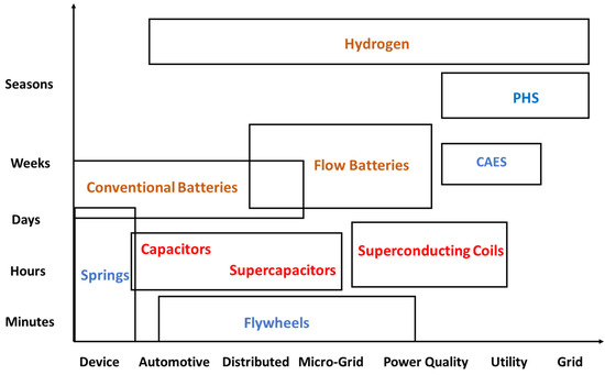 - Mechanical: e.g., pumped hydro systems (PHSs), compressed air energy systems (CAESs), flywheels, springs, torsion bars, etc.