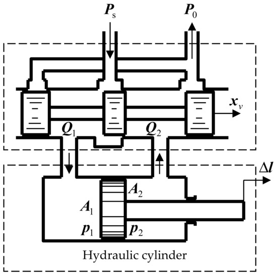 The parallel robot was actuated by six identical hydraulic servo power-mechanisms, and the principle diagram of each hydraulic servo power-mechanism was shown in Figure 4 [13].