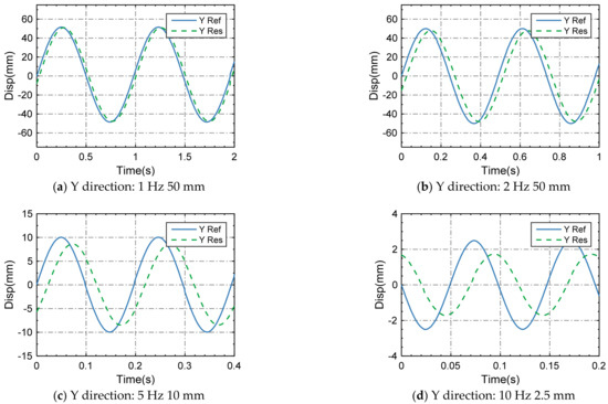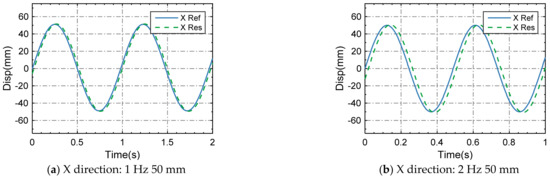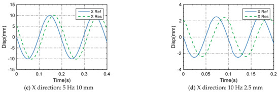 An experiment was conducted of the sinusoidal motion along the X and Y direction, respectively. The experiment result along the X direction is shown in Figure 8, and the result along the Y direction is shown in Figure 9.