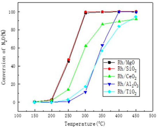 - Beyer, H.; Emmerich, J.; Chatziapostolou, K.; Köhler, K. Decomposition of nitrous oxide by rhodium catalysts: Effect of rhodium particle size and metal oxide support. Appl. Catal. A Gen. 2011, 391, 411–416. [Google Scholar] [CrossRef]