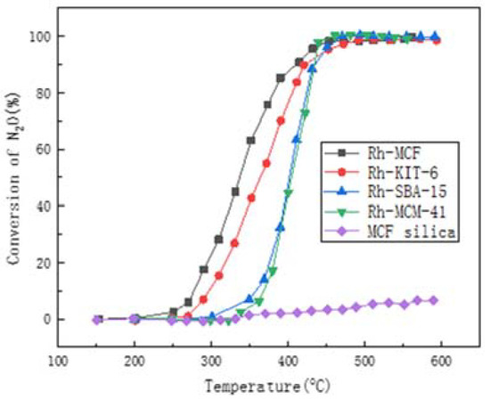 - Du, J.; Kuang, W.; Xu, H.; Shen, W.; Zhao, D. The influence of precursors on Rh/SBA-15 catalysts for N2O decomposition. Appl. Catal. B Environ. 2008, 84, 490–496. [Google Scholar] [CrossRef]