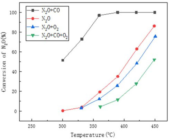 - Noble metals show good N2O decomposition performance at low temperatures, but they have high costs, a narrow temperature window and can easily lead to poisoning by oxygen and water vapor.