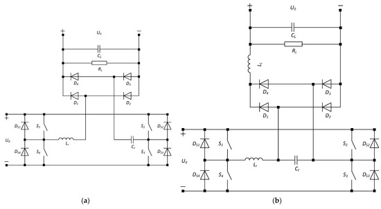 The validity of the proposed methods will be verified by designing two examples of a series resonant DC-DC converter (Figure 3a) and a resonant DC-DC converter with a parallel-loaded capacitor (Figure 3b), respectively.