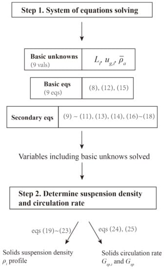 - Rhodes, M.J.; Geldart, D. A model for the circulating fluidized bed. Powder Technol. 1987, 53, 155–162. [Google Scholar] [CrossRef]