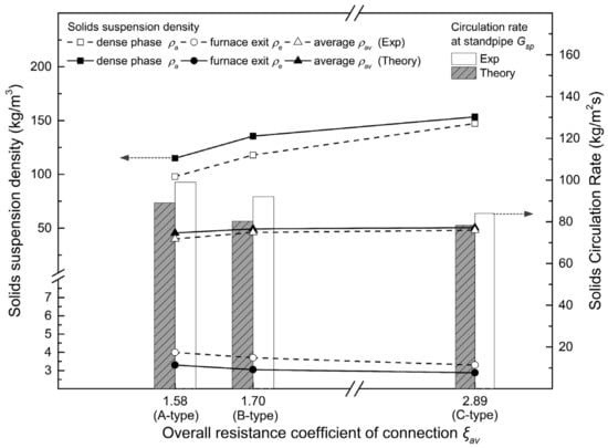 - The solids suspension density in the furnace and solids circulation rate distributions are influenced by connection resistance. With smaller overall resistance coefficient ξav of a connection, the axial solids suspension density in the furnace distributes more uniform and solids circulation rate becomes larger;