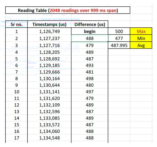 As the voltage and current waveforms are sampled at 2048 Hz, the interrupt should be generated at every 488.28 μs interval. To do so, an appropriate count is loaded in timer 1 of core 1, and this timer interrupt updates a flag variable in the interrupt service routine (ISR) upon its overflow, indicating to the core that the time has elapsed and the sensors should be polled. The sensors are polled for a complete 1 s interval like this, and the sampled readings are passed to core 0 for the calculation task. After this, polling for the next second begins again, and the process continues forever in a loop. It is a time-bound infinite loop that runs continuously in parallel to all the other tasks. The flow chart of the whole program is shown in Figure 5.