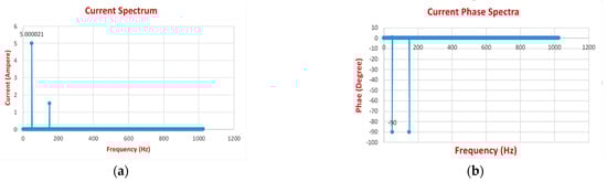 Spectra of current by the smart meter, (a) magnitude and (b) phase spectrum.