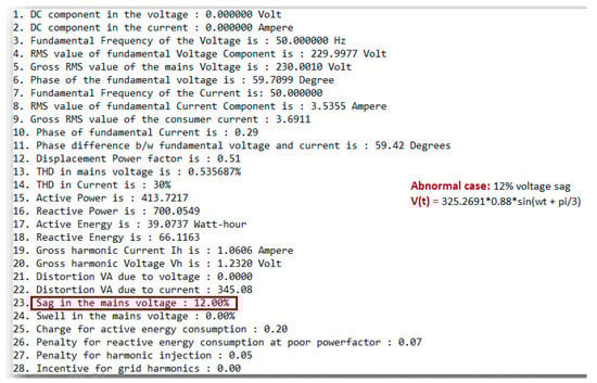 Interestingly, nowadays consumers have realized the impact of poor PQ and are willing to pay higher tariff prices for a good quality power supply []. The consequences of poor PQ include fluctuations in the supply voltage, which causes a flicker phenomenon in domestic lights. This flickering causes a sensation of irritation to human eyes. In addition, oscillatory and impulsive transients or surges cause damage to computers and electronic loads []. Voltage sag and swell also degrade the performance of electromechanical devices like fans and motors []. These PQ disturbances not only affect the consumers but also damage utility equipment. For example, modern consumer loads are rich in harmonics, which can cause distribution transformers to get overheated and even saturated in worst-case scenarios due to the DC offset. Harmonics in the consumer load current also cause the overheating of supply cables and shortens their life []. According to a European PQ survey [], around 150 billion Euros of financial losses per year have occurred in EU-25 countries because of PQ disturbances. The Asia Power Quality Initiative’s latest report on the PQ regulation policies of India [] declared that Indian utilities have a robust system for frequency regulation and reliable supply. However, PQ issues such as voltage variations, transients, and harmonics are not dealt with well. Hence, both the grid and consumers suffer and tolerate the consequences of poor PQ. Therefore, PQ monitoring and regulation are indispensable for utilities in modern smart grids.