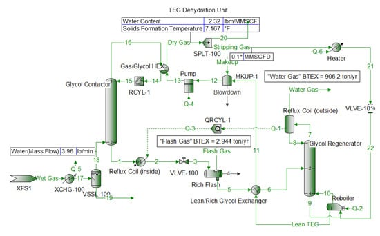 - Neagu, M.; Corsaro, D.L. Technical and economic evaluations of the triethylene glycol regeneration processes in natural gas dehydration plants. J. Nat. Gas Sci. Eng. 2017, 37, 327–340. [Google Scholar] [CrossRef]