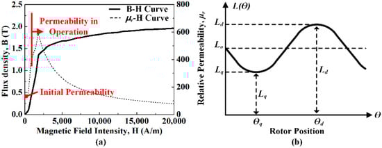 (a) B–H curve of rotor core material. (b) Inductance change according to rotor position.