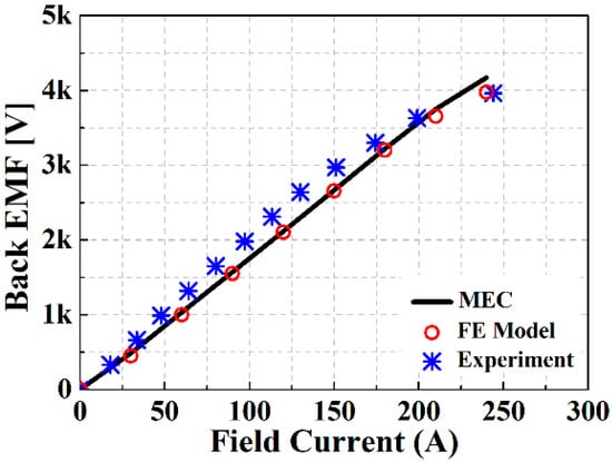 To verify the electromagnetics and performance of WRSG, electrical circuit parameters—such as back electromotive force (EMF), phase inductance, and phase resistance—are required. Electrical circuit parameters can be obtained through the proposed analysis and the MEC.