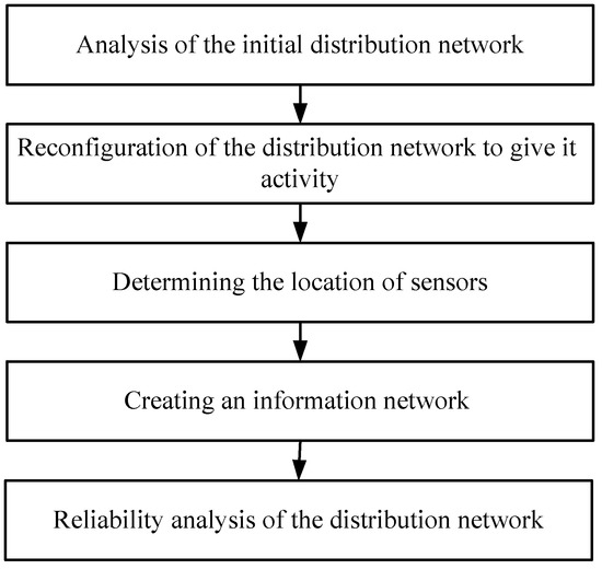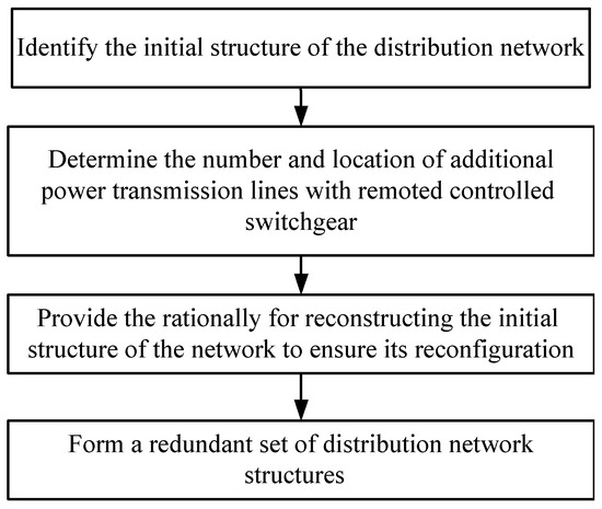 When selecting the structure of a flexible distribution network, it is advisable to use the algorithm whose flowchart is shown in Figure 1.