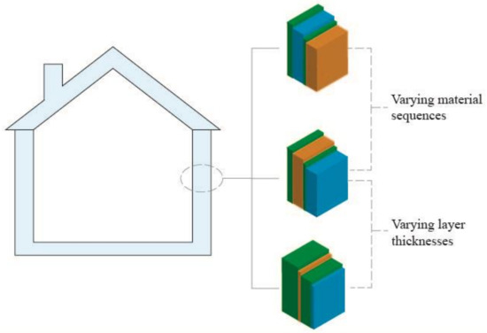 - Gori, P.; Gusyysti, C.; Evangelisti, L.; Asdrubali, F. Design criteria for improving insulation effectiveness of multilayer wall. Int. J. Heat Mass Tran. 2016, 103, 349–359. [Google Scholar] [CrossRef]