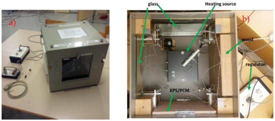 Experimental setup of the hotbox, (a) covered by all sides; (b) top cover removed.