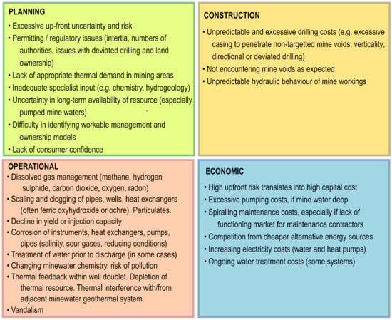- Banks, D. Fessing up: Risks and obstacles to mine water geothermal energy. In Proceedings of the Mine Water Heating and Cooling; A 21st Century Resource for Decarbonisation, online, 10–11 March 2021; Available online: https://www.researchgate.net/publication/351450683_’Fessing_up_Risks_and_obstacles_to_mine_water_geothermal_energy (accessed on 20 September 2021).