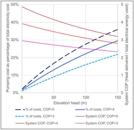The feasibility of extracting heat from (or rejecting heat to) flooded mine workings has been demonstrated by operational projects in the USA, Germany and Canada since the 1980s [6,7,8]. Although this promising low-carbon heating and cooling source is available in numerous countries with a strong mining legacy, many are yet to exploit the potential. There are several configurations of minewater geothermal energy (MWG) systems; the fundamental design involves removing heat from the water in abandoned flooded mines to provide low-carbon heating for a variety of users, often through district heating networks. In a typical system, heat is transferred from minewater to a secondary heat transfer circuit via a plate or shell-and-tube heat exchanger. Heat pumps are typically employed to upgrade heat from the secondary heat transfer fluid and deliver it at a suitable temperature to a customer. The heat pumps can be centralised at one or a few “energy centres”, distributing high temperature fluid to customers. Alternatively, in a distributed system, individual customers use heat pumps to extract heat from (or reject heat to) the low-temperature secondary circuit. Many MWG systems are thus a subset of well-established Ground Source Heat Pump (GSHP) technology [9,10,11]. The use of a heat exchanger and secondary fluid avoids potential corrosion and/or mineral scaling issues caused by direct contact between minewater and the heat pump evaporator/condenser [12].