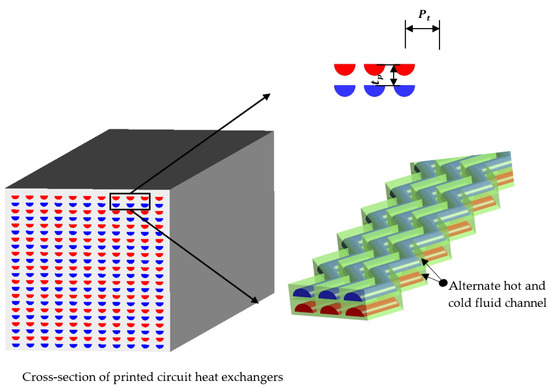 - The recuperators and pre-coolers are designed as zigzag channeled PCHEs, as indicated in Figure 4. Figure 1 lists the details and specifications of the zigzag channel used for the current work;