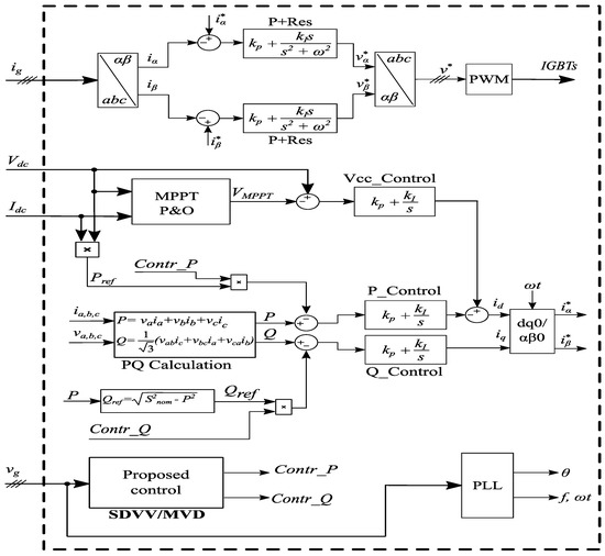 - Ouai, A.; Mokrani, L.; Machmoum, M.; Houari, A. Control and Energy Management of a Large Scale Grid-Connected PV System for Power Quality Improvement. Sol. Energy 2018, 171, 893–906. [Google Scholar] [CrossRef]