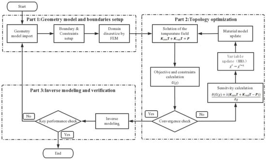 In this section, a topology optimization model concerning the radiator is explained, including the SIMP interpolation model and the objective. The work flow of the whole optimization design process is also illustrated.