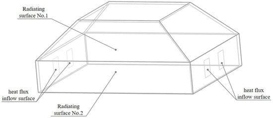 As what has been depicted in Figure 2, the whole boundary , which is the total outer boundary of domain , is split into different subsets, and for each part, equations concerning different heat fluxes are as follows: