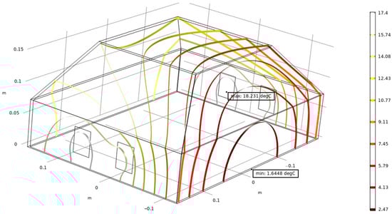In Figure 6, the maximal temperature and the isothermal surface are illustrated.