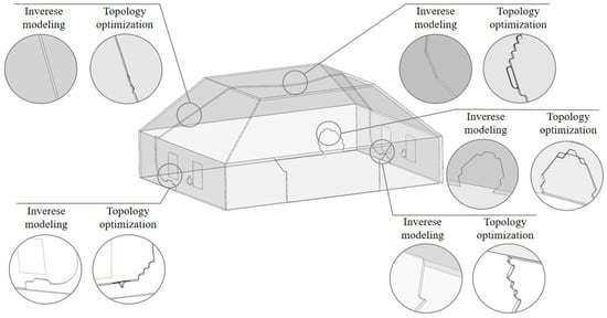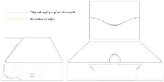Since topology optimization result has complicated edges, to improve manufacturability, an inverse modeling based on the topology optimization result is conducted. As shown in Figure 10, the complicated zigzag edges of the optimized model are replaced by smooth curves and straight lines.