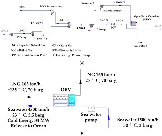 Process flow diagram of conventional LNG regasification terminal: (a) The simulation of ORV, (b) Schematic configurations of ORV.