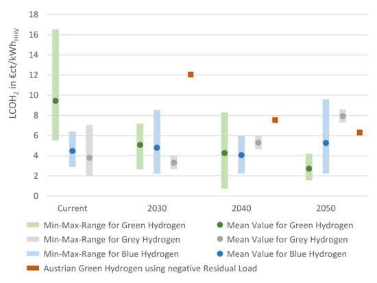 - Lux, B.; Pfluger, B. A supply curve of electricity-based hydrogen in a decarbonized European energy system in 2050. Appl. Energy 2020, 269, 115011. [Google Scholar] [CrossRef]