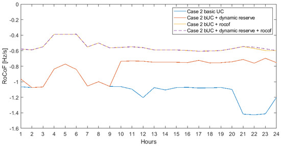 24-h Case 2 RoCoF under various constraints.
