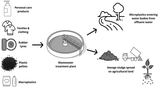 The route of MPs into the environment is either through wastewater treatment plants (WWTPs) or without treatment, leading straight into waterways [7]. Considering that 80% of the world’s wastewater goes untreated [24], even if solutions such as removing MPs directly from the WWTP or appropriately managing sludge in the context of MPs are enforced, the significance may not be as big if only 20% of wastewater is being treated.