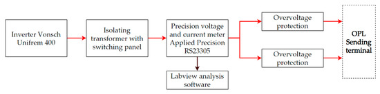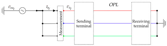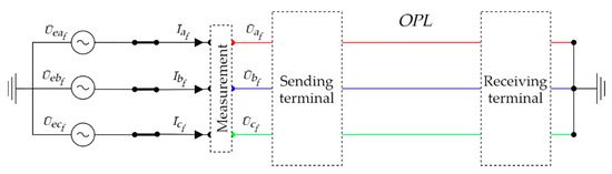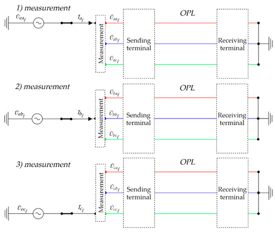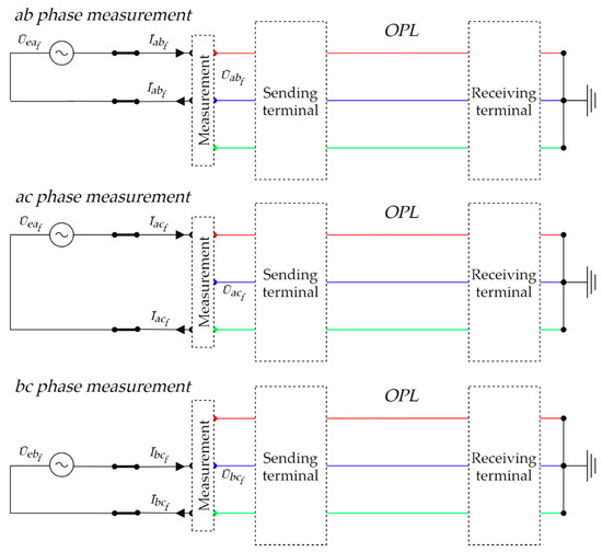 As shown in Figure 3, the receiving terminals of OPL are shorted and grounded. Single-phase power source is ungrounded and connected to sending terminals between two measured phases at a time Figure 3. OPL line-line voltages for every loop and currents in each phase are measured for every value of from .