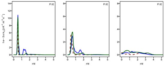This approach was developed by Safari et al. [11,12,53]. In addition to the classical filtered governing equations, they introduced a filtered entropy transport equation. To formulate models for the non-closed terms, the authors applied the methodology based on the Transported Filtered Density Function (T-FDF), which provides the chemical reaction and its entropy generation contribution in closed forms (see (IIch) in Equation (13)). In particular, the FDF transport equation is modeled by a set of Stochastic Differential Equations (SDEs) corresponding to position, scalars and entropy [12]. Using these SDEs together with the classical Gibbs relation [54], and following the indications detailed in [55,56,57], the models of the non-closed terms of entropy generation in Equation (13) emerge as: