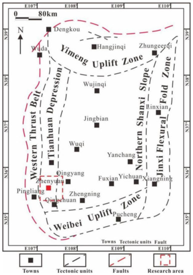 - Haiyong, M.; Lifa, Z.; Xiuqin, D. Hydrochemical characteristics and geological significance of the Chang 8 formation of the Yanchang Formation in Jiyuan area, Ordos Basin. J. Northwest. Univ. 2013, 43, 253–257. [Google Scholar]