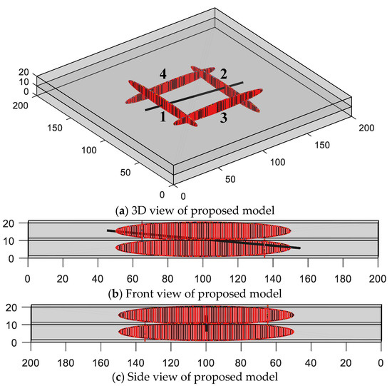 Although the Equation (16) looks complex, it can be seen that the coefficient matrix in the above formula is only related to the geometric parameters between matrix and fracture. Therefore, these coefficient matrices only need to be calculated in the pretreatment stage without reducing the calculation efficiency. Moreover, the physical quantities contained in the above formula (matrix grid central pressure, fracture grid central pressure, and saturation) are linear, so the above formula does not increase the nonlinearity of the overall equation system. It can be easily coupled into the finite volume discrete scheme of Equations (4) and (5).