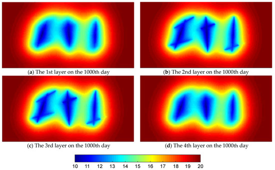 Comparison of pressure profiles for different layers on the 1000th day.