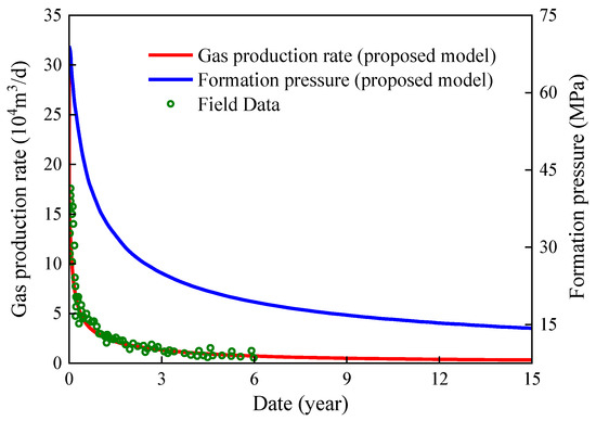 Curves of formation pressure and gas production rate.