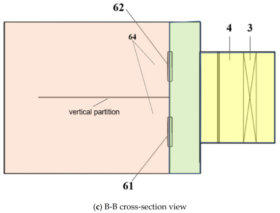 Fans in different paths realize the active flow distribution of dry air in the system. The parameters of the fans are shown in Table 1. The partition wall between the drying cabinet and the mixing zone is equipped with six reversible axial flow fans (GKT/FB5S-4D). They are divided equally into two groups. Fans in each group alternately function as the supply fan and the return fan by adjusting the rotation direction, guiding the air in the drying cabinet to flow clockwise or counterclockwise, and ensuring homogeneous drying. Two bypass fans (GKF/FB3S-2D) are installed on the left side of the top air duct. Two circulating fans (GKF/FB3S-2D) are installed on the partition between the top air duct and the mixing zone. A centrifugal fan is arranged on the lower wall between the heat pump zone and the mixing zone.