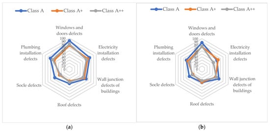 - According to the insulation level of structures: one group of the buildings that were designed as class A energy performance housing had the 200–220 mm polystyrene (EPS) insulation layer, the other group of buildings that were declared as the class A+ energy performance dwelling had the 240–260 mm polystyrene (EPS) insulation, and the most energy-efficient buildings of the class A++ were insulated with the 280–310 mm polystyrene (EPS) layer.