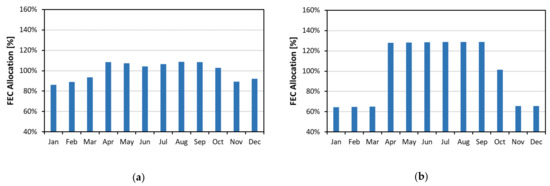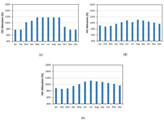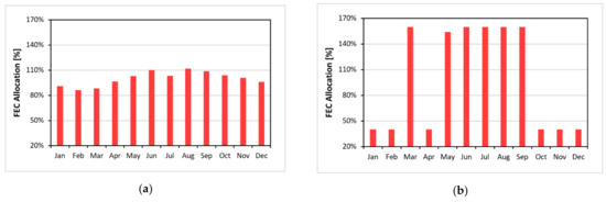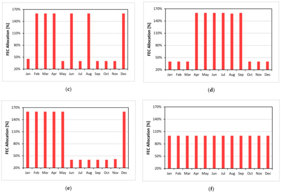 Figure 7 presents the FEC allocation that follows the ERM default criterion. It can be noted that the ERM default criterion represents a risk-averse strategic, with an allocation that varies only from 90% to 110%.