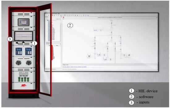 To validate the accuracy of the obtained results, the same microgrid testbed is developed using a state-of-the-art hardware-in-the-loop setup from the Typhoon HIL manufacturer, which is depicted in Figure 6 [29]. Electrical part of the network is consisted of high accuracy models from Typhoon HIL library including DER models, whereas signal processing part of the network is realized through the real, physical, inverter controllers which are physically connected to Typhoon HIL inputs and mapped to the input signals of appropriate DER inverters which are the components of a software model. This allows real physical controllers to be able to control DER behavior during short circuit faults and provides a highly realistic testbed. For inverter controller, there is no difference between being connected to the Typhoon HIL and to the real microgrid. Inverter control strategy which is in accordance with the FRT requirements from the German grid code are implemented in physical controller, thus responses of currents which represent IBDERs’ contributions to the fault current, obtained with the described setup, fully correspond to the real-life fault responses of IBDERs.