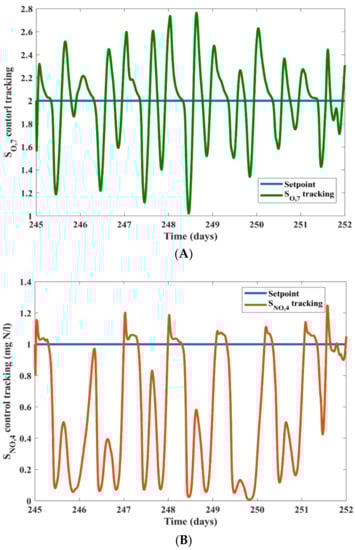 Set-point tracking for: (A) dissolved oxygen and (B) Nitrate.