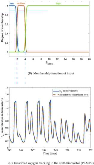 The corresponding linguistic variables for “high,” “low,” and “medium,” are given in Table 5. With these controllers, closed-loop simulations are carried out and the results are given in Figure 5C. It can be observed that a good supervisory set-point tracking is achieved by using the PI-fuzzy controller design framework. The effluent quality and operational cost details along with other quantitative results are given in Section 4.4.