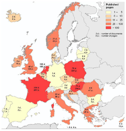 Our analyses demonstrate that the most active countries at publishing calls are France, Netherlands, Poland, Hungary, Italy, the UK, and Norway, with 159 to 31 publications (Figure 1). The rest of the countries (18) had less than 10 published calls. The average number of pages of calls reflects the character of legal governance in a given jurisdiction. In this regard (Table 1, Figure 1) Eastern European countries are the frontrunners; Romania (10.3 pages/call) Poland (6.8 pages/call), Hungary (4.1 pages), and Greece (3.8 pages). The commitment of the new MS (2004–2013 accessions) to the Directive’s options is evident. With regard to Art. 5(1), very few publications refer to their national calls, not even the 1–2 paged ones, which questions if calls comply with the requirements on the minimum content.