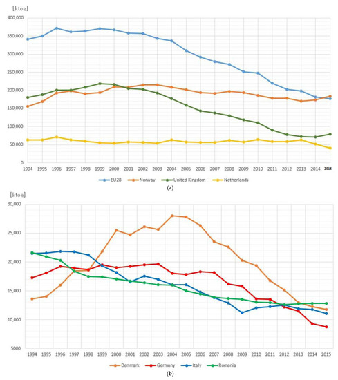Oil and gas are fossil fuels, non-renewable resources that account for 60–65% of the total final energy consumption and 20–25% of the domestic energy production in the EU (IAE, [1]). MS have sovereignty over fossil fuels and minerals on their territories because most segments of this sector, especially the proprietary decisions on the extraction, are out of the scope of the EU primary legislation, i.e., the Treaty of the Functioning of the EU (TFEU) (Hámor [2], Hámor et al. [3] Hámor-Vidó et al. [4]). In 1994, a progressive piece of EU secondary legislation was published on the rules of hydrocarbons exploration and production (Directive 94/22/EC of the European Parliament and of the Council of 30 May 1994 on the conditions for granting and using authorizations for the prospection, exploration and production of hydrocarbons) (hereinafter: “Hydrocarbons Directive” or “Directive”) in order to ensure open and fair competition. The European Commission (EC) monitors the implementation of EU legislation; however, no such report has been published since 1998 (EC [5]), in spite of the obligation of Article 9 that MS shall publish an annual report on the geographical areas opened, authorizations and entities granted, as well as the reserves.