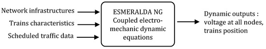 Railway simulators calculate all the physical quantities needed by the engineer for given infrastructures and scheduled traffic: voltages, currents, train position and speed, and heatings. In the present work, we use ESMERALDA NG, a simulator developed and distributed by SNCF Réseau [13].