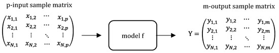 - Generate a p-input sample matrix and apply the model to calculate the corresponding m-output matrix (see Section 2.2 and Figure 3).