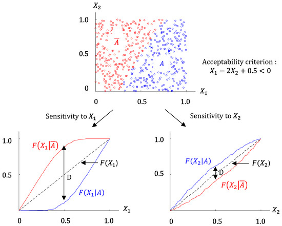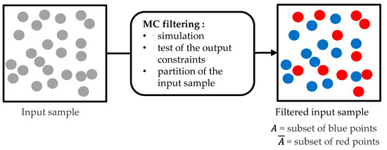 Another issue with sensitivity analysis is identifying which part of the input space is responsible for leading the model output in a given region of the output space. This issue typically arises when the model output must meet some constraint, such as being above or below a given threshold. In terms of sensitivity analysis, it is necessary to determine whether a given input has an influence on wheather this output constraint is met. Regional sensitivity analysis, based on Monte Carlo filtering, was proposed to adress this issue [39,40,41].