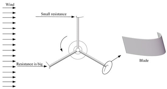 Here, W is relative wind speed of blades. In the formula, is the kinematic viscosity of air. Blade tip speed ratio is the ratio of the linear velocity of blade rotation around the spindle to the incoming wind speed, reflecting the relative speed of the wind generator, which can be expressed by Equation (7). When the vertical axis offshore wind turbine is running at high tip ratio, the centrifugal force on the blade is large, which requires high structural strength of the offshore wind turbine.